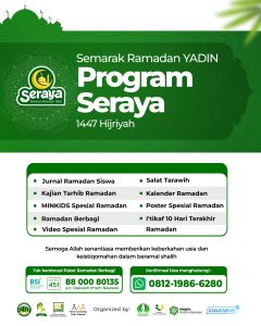 SERAYA (Semarak Ramadan Yayasan Dakwah Imam Nawawi) merupakan program tematik Ramadan yang diselenggarakan oleh Yayasan Dakwah Imam Nawawi (YADIN) sebagai ikhtiar untuk menghidupkan bulan suci Ramadan agar lebih bermakna dan...
