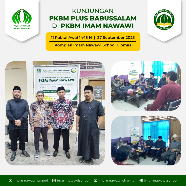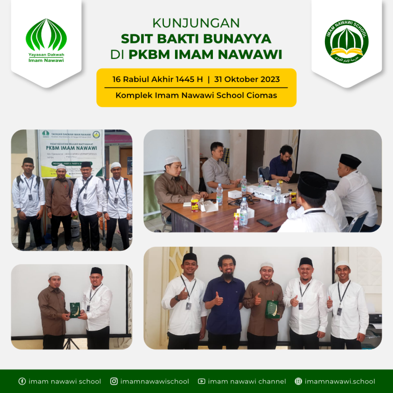 Yayasan Dakwah Imam Nawawi adalah lembaga non profit yang didirikan pada tahun 2017 untuk menaungi Imam Nawawi School yang telah terselenggara terlebih dahulu. Dengan motto “Bersama Membangun Negeri dengan ilmu dan Amal” kami berupaya untuk menumbuhkan kebersamaan, semangat gotong royong, ukhuwah Islamiyah dalam menjalankan amanah dakwah di Indonesia. Kami juga berusaha untuk mewujudkan/mengamalkan ilmu dan kebaikan dengan tangan sendiri. Selengkapnya.....