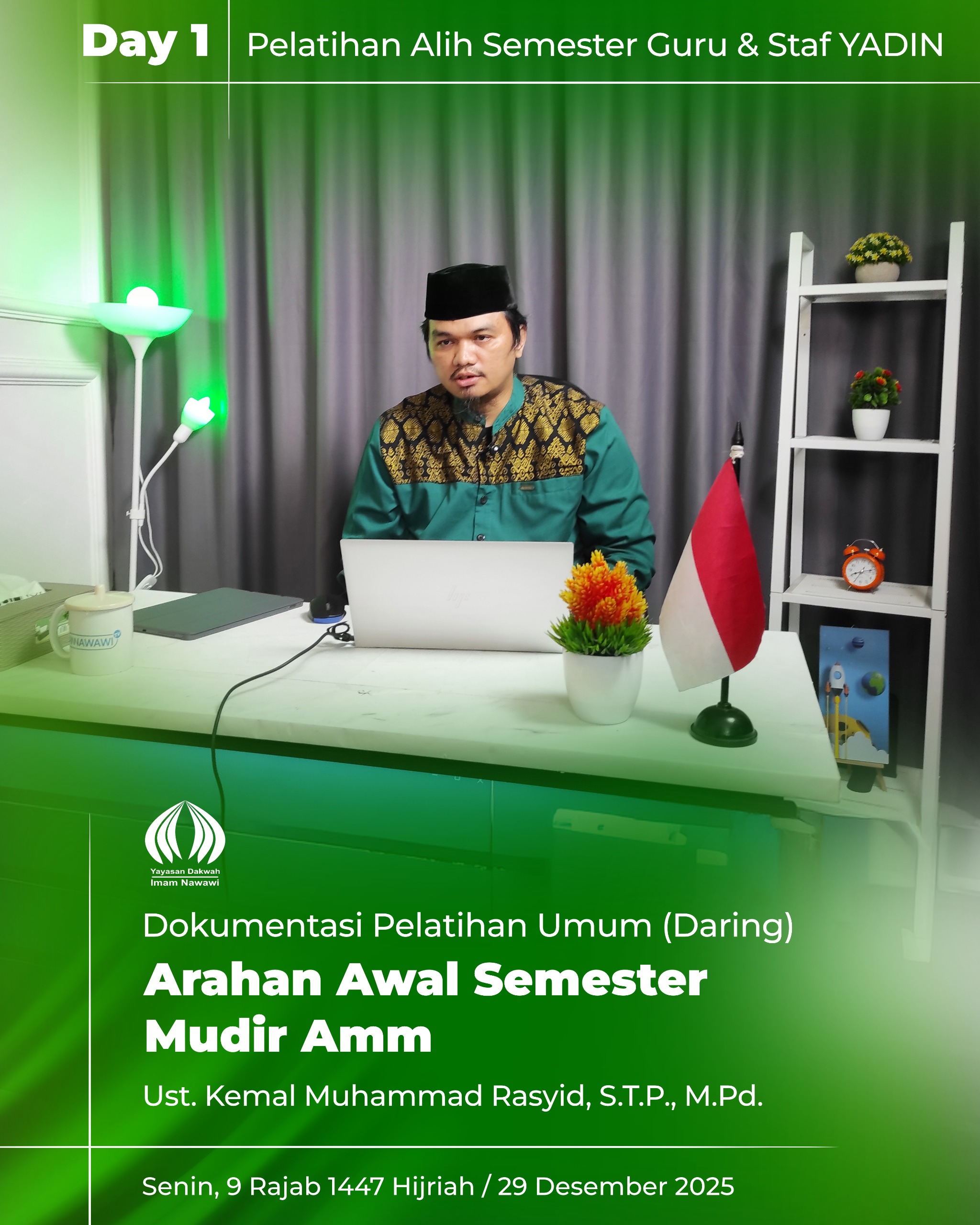Pelatihan ini diikuti oleh seluruh pegawai di lingkungan Yayasan Dakwah Imam Nawawi (YADIN), yang meliputi unit-unit pendidikan dan kelembagaan, …