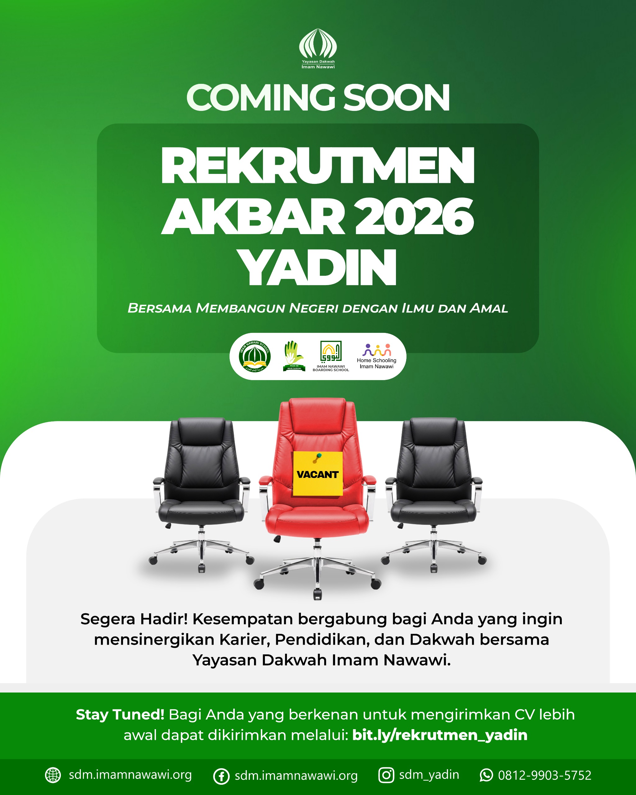 Yayasan Dakwah Imam Nawawi (YADIN) akan menggelar Rekrutmen Akbar 2026 sebagai upaya penguatan sumber daya manusia di bidang pendidikan …