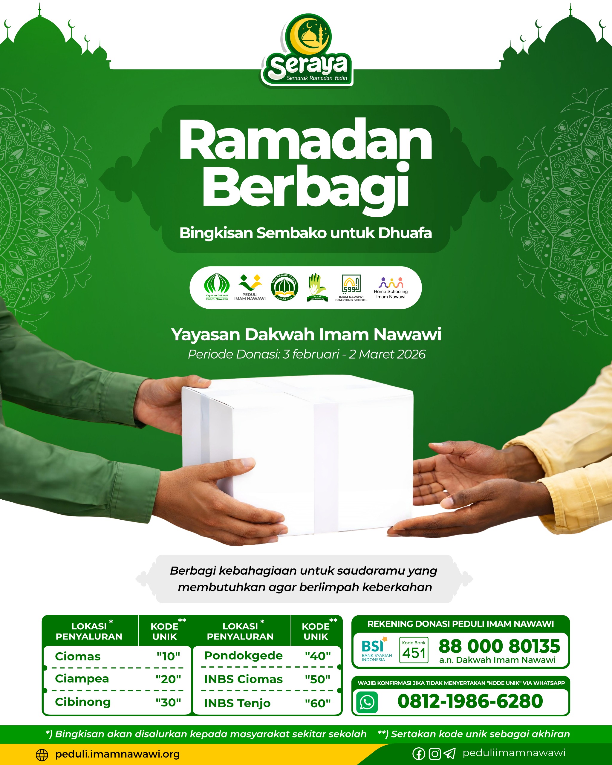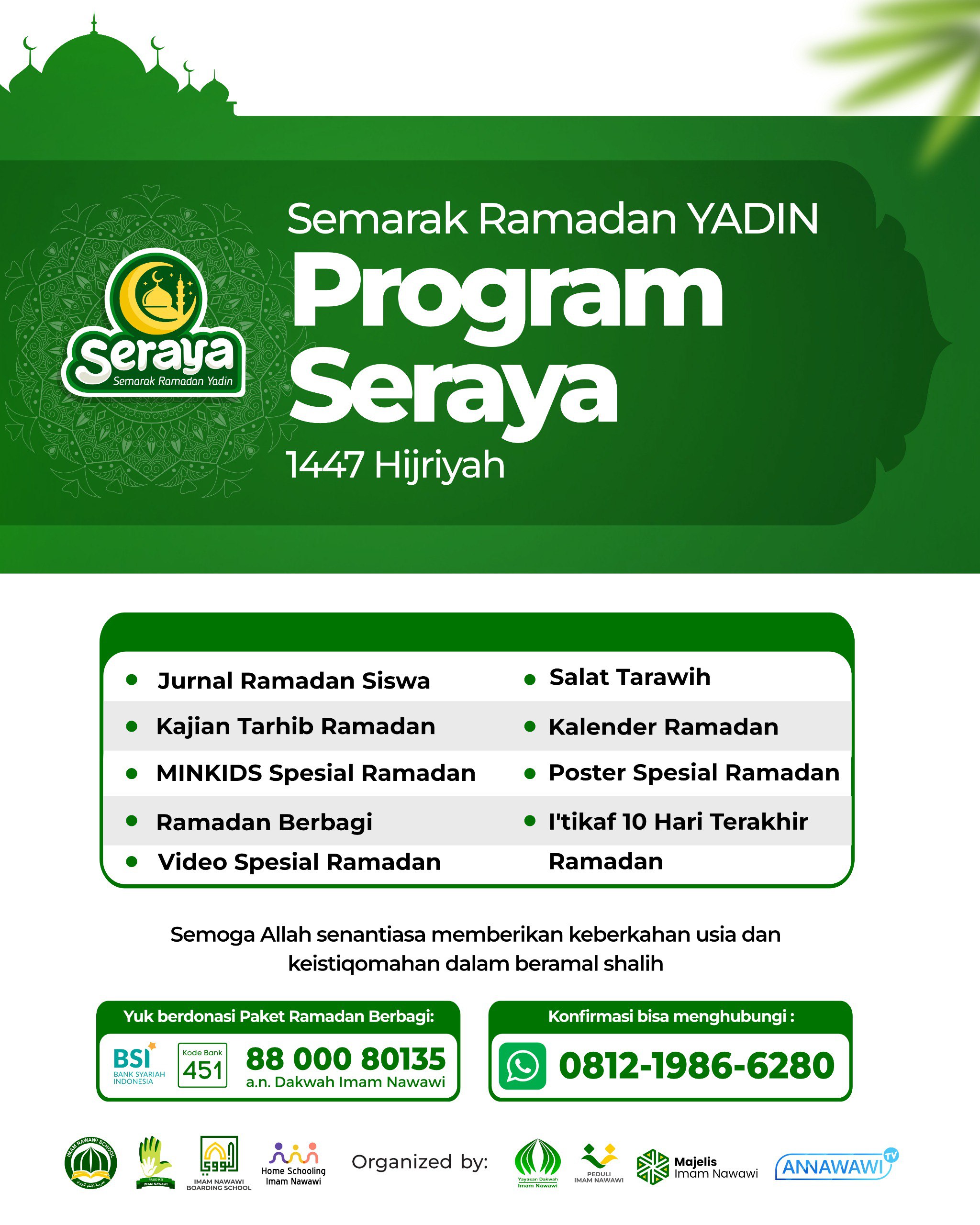 SERAYA (Semarak Ramadan Yayasan Dakwah Imam Nawawi) merupakan program tematik Ramadan yang diselenggarakan oleh Yayasan Dakwah Imam Nawawi (YADIN) …