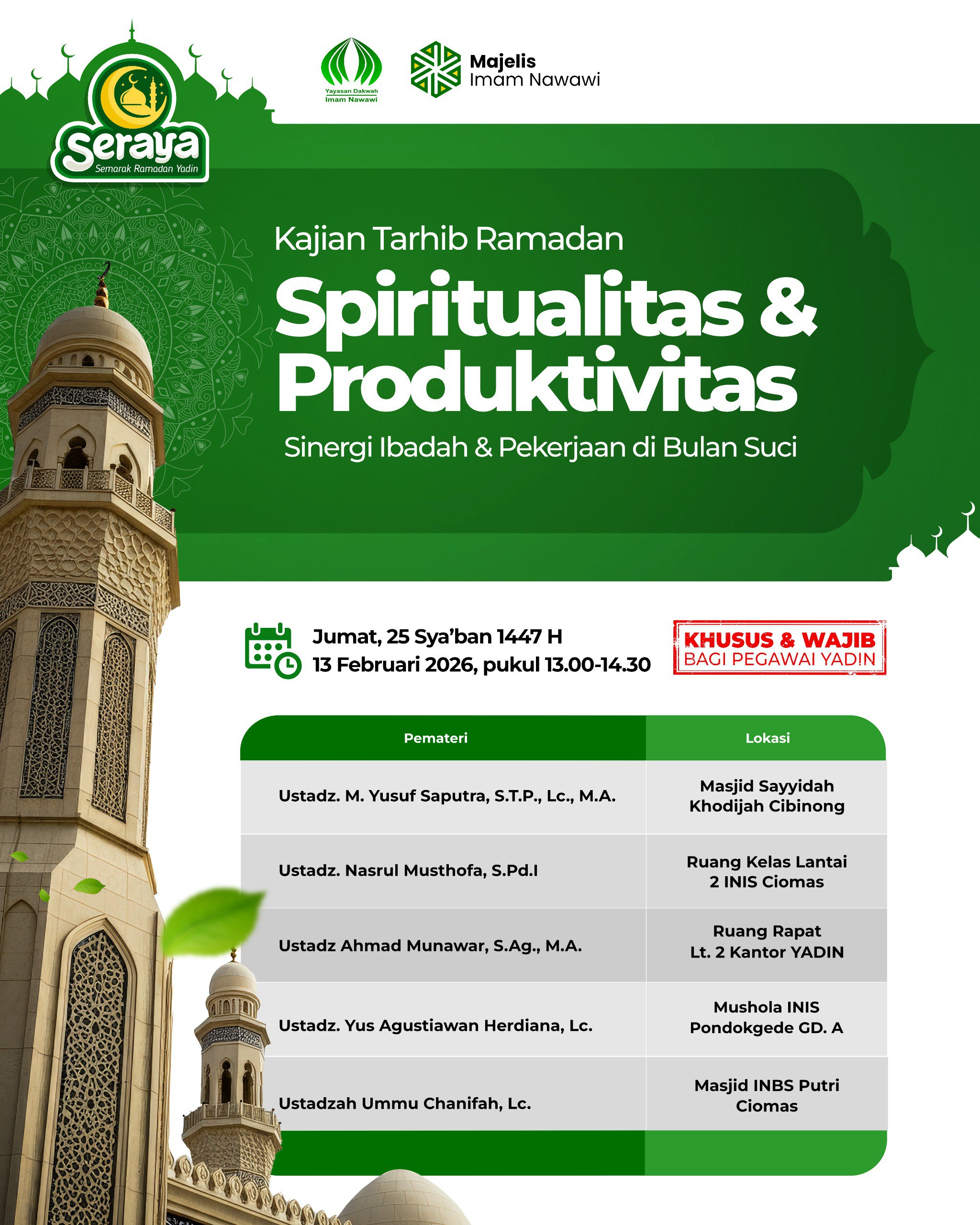 Kajian Tarhib Ramadan 1447 H Pegawai YADIN dan Unit Pendukung ✨ Spiritualitas & Produktivitas ✨ Sinergi Ibadah & Pekerjaan …